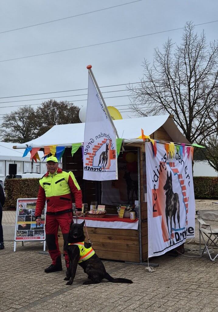 Onze infostand werd drukbezocht en we hebben de hele middag door met mensen kunnen praten over wat het reddingshondenwerk inhoudt. De vragen gingen vooral over welke honden geschikt zijn en hoe we ze trainen. Mensen zijn vaak onder de indruk van de hoeveelheid tijd die daar in gaat zitten en dat het dan ook nog allemaal vrijwillig is. En als er dan ook iets wordt gekocht of gedoneerd, zijn wij daar erg blij mee. Elke bijdrage is welkom voor de aanschaf /vervanging van een veilige uitrusting van onze mensen en honden.