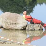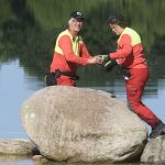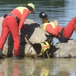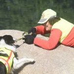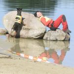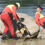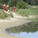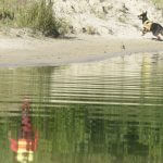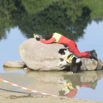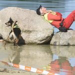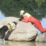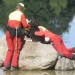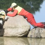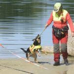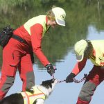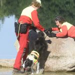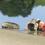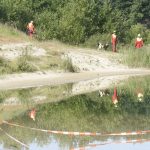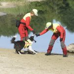Terwijl de ervaren honden een inzetoefening deden, trainden de honden in opleiding bij het water. En nét op dat moment stond daar ook Albert Hoiting van Fotoclub Borger-Odoorn met zijn telelens.