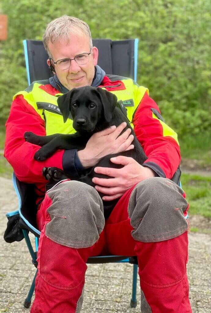 Hij komt onze gelederen versterken en begint spelenderwijs aan zijn opleiding tot inzetbare reddingshond.